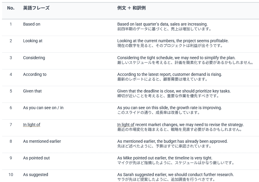 論理的な説明をするときに役立つフレーズです。