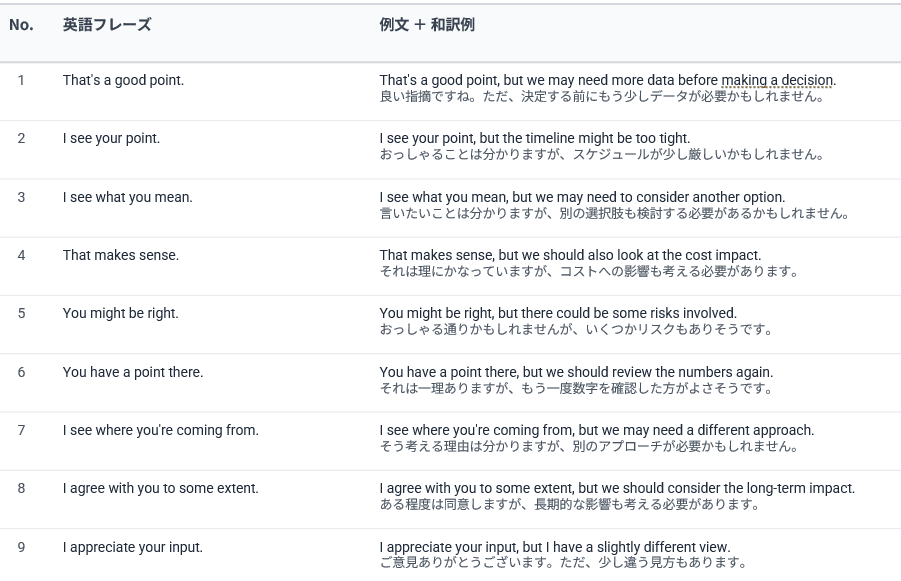 反対意見を言う前にこの一言を入れることで、議論の雰囲気を和らげることができます。