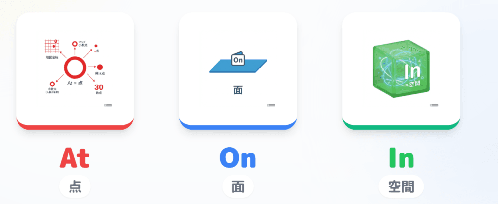 これら3つの前置詞を使い分けるポイントは